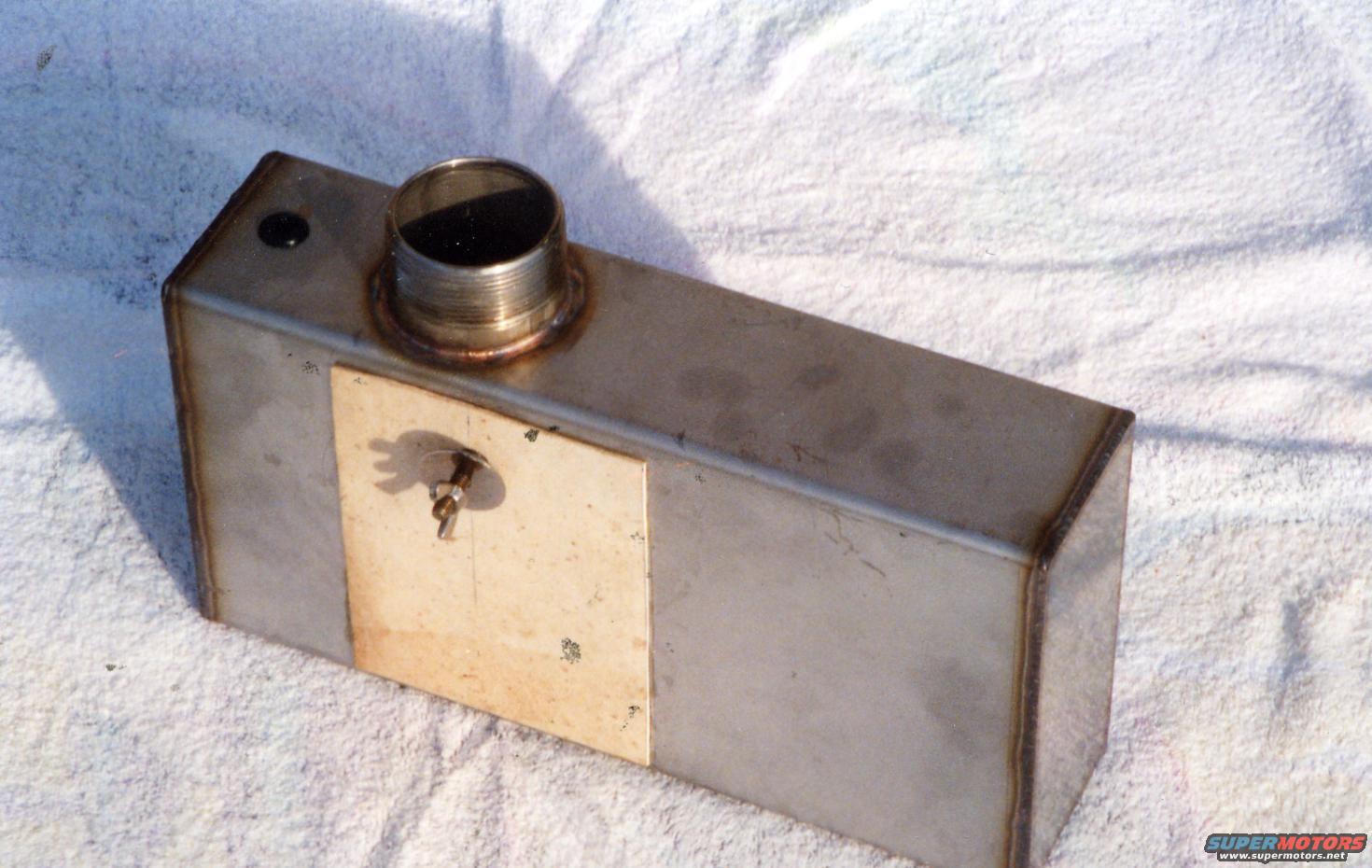 Stainless steel coolant overflow tank.