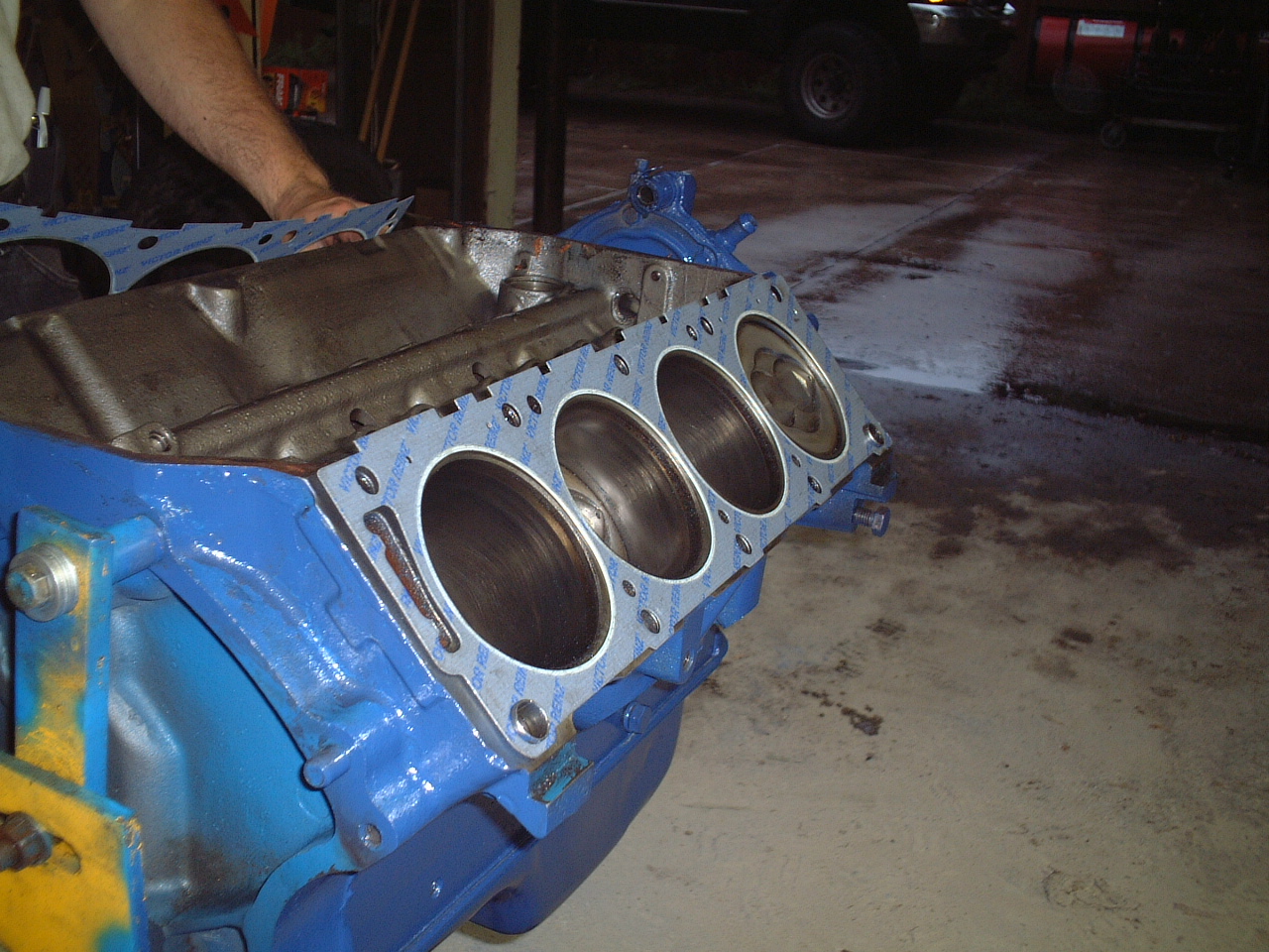 Installing head gaskets.