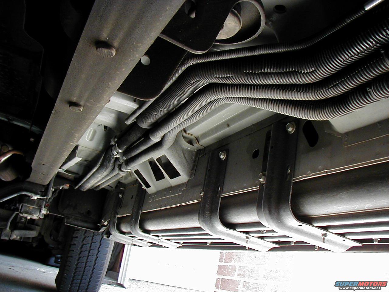 There's about 4 mounting clamps holding up the 4 lines to the bottom of the truck body which will have to be dropped in order to remove the wire loom covering and insulation.