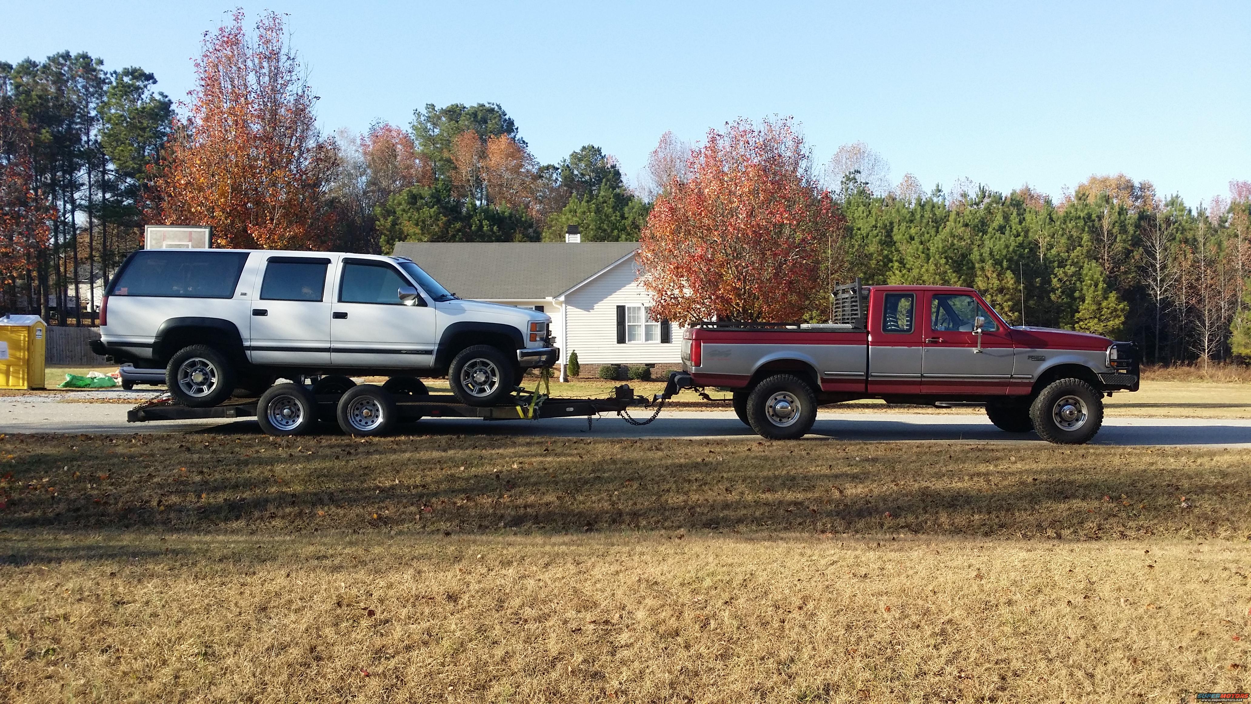 This one was a lesson in making sure you're loaded right. This combination literally damn near killed me. Didn't pull the Suburban as far forward as I should have. VERY unstable past 45. I'll be sure not to do that again. Aside from that stupid mistake it hauled great.