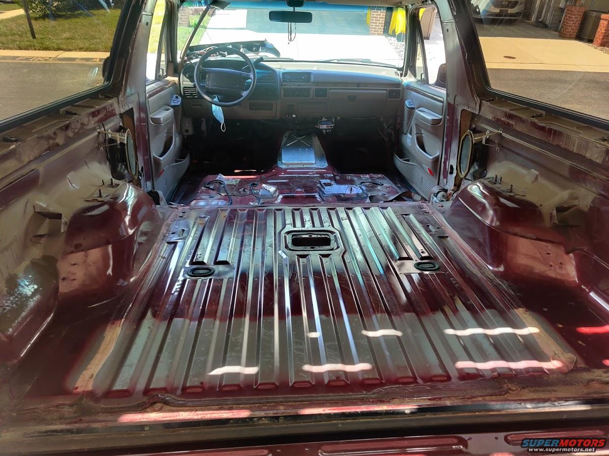 20200718 - Progression of cleaning, laying out the first stage of sound deadening (CLD tiles), and applying them to the floor.