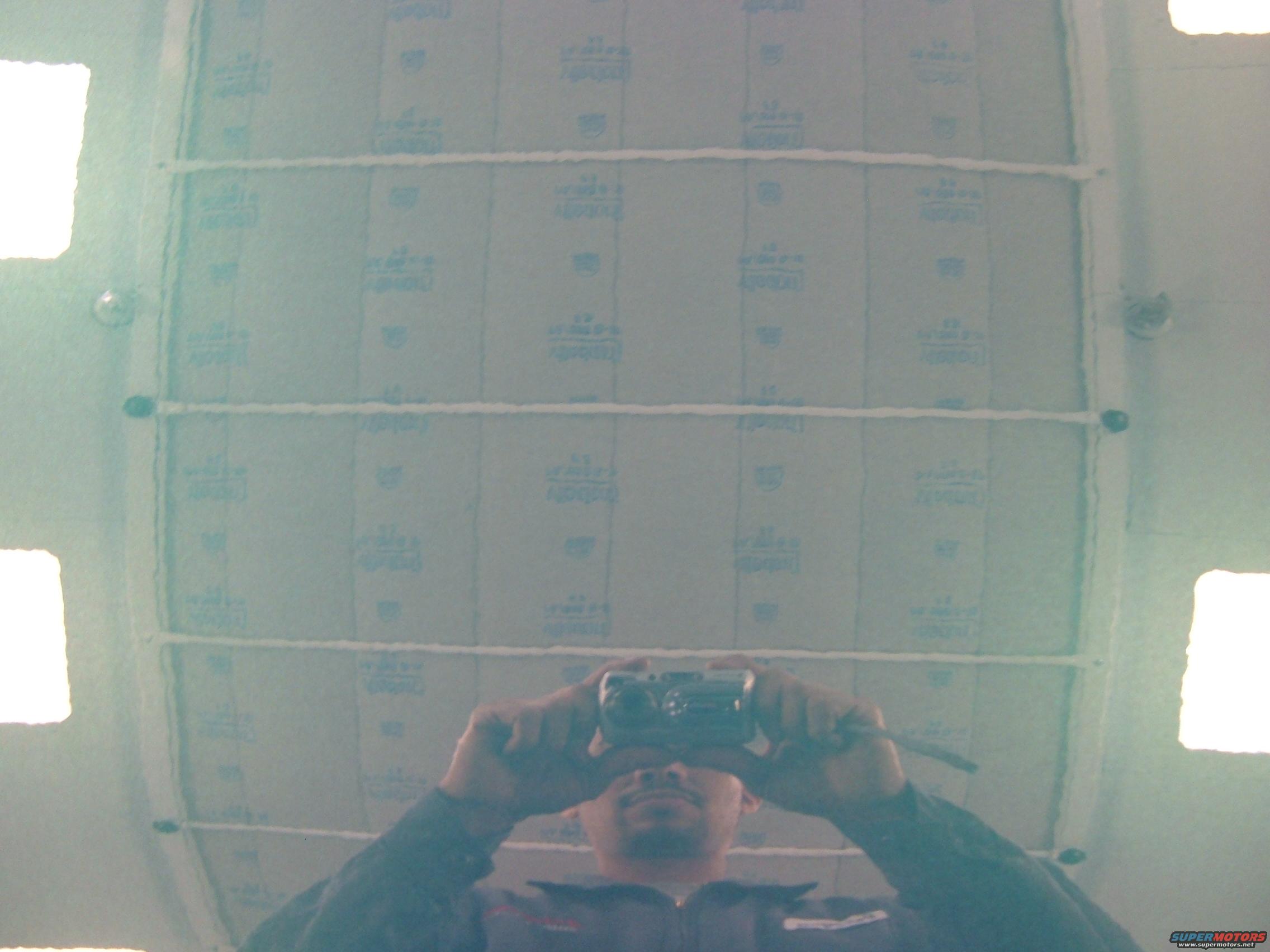A picture of the hood. The reflection is of the filters on the ceiling.