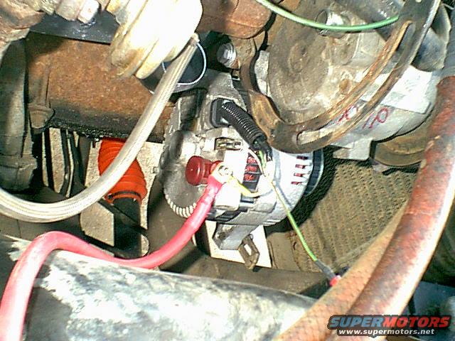 on the 4.9 the bottom alt bracket was a adjustable bar i install the alt like the 2G was installed. the green and red is the 12V on wire. it connects to the green with red wire it was connected to before.