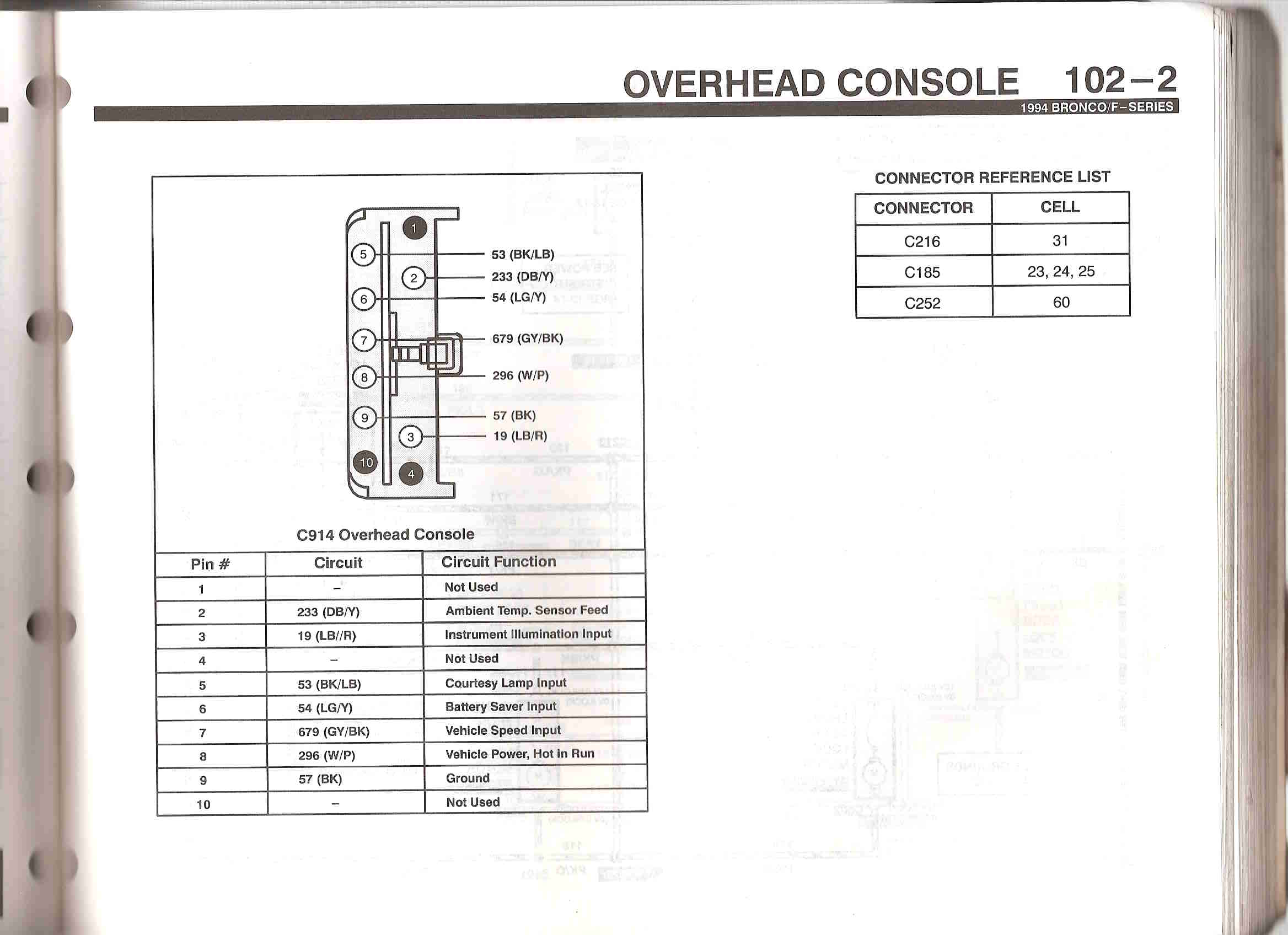 overhead console wiring diagram