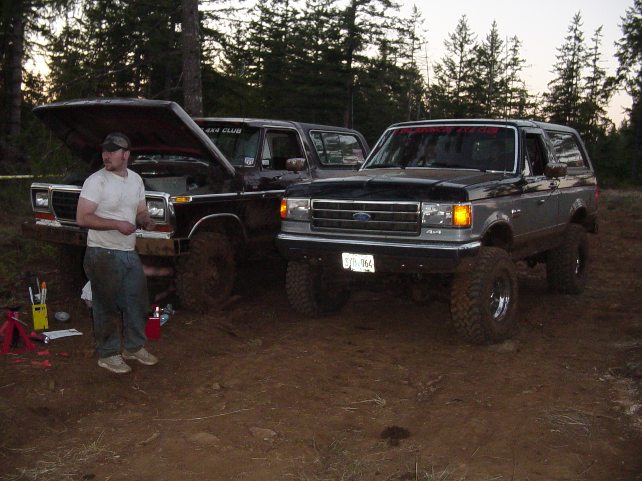 Checking the damage to Jons Bronco