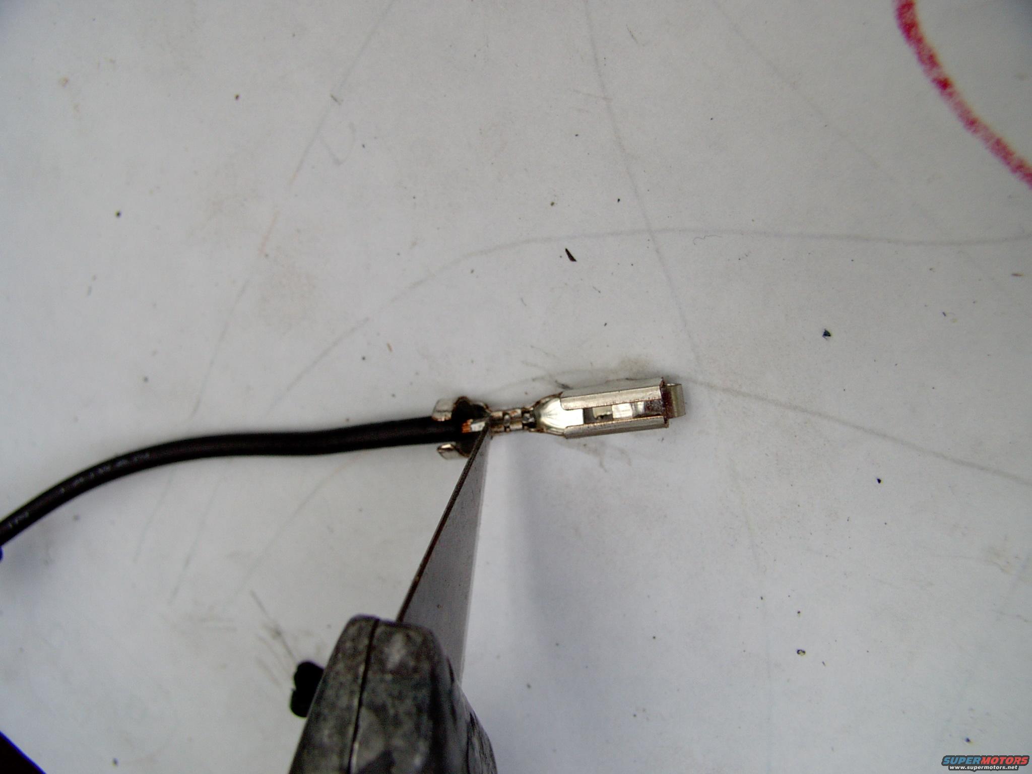 Press down with the carpet knife and just pull up on the wire and bend and break the rest of the strands. It's really easy this way.
