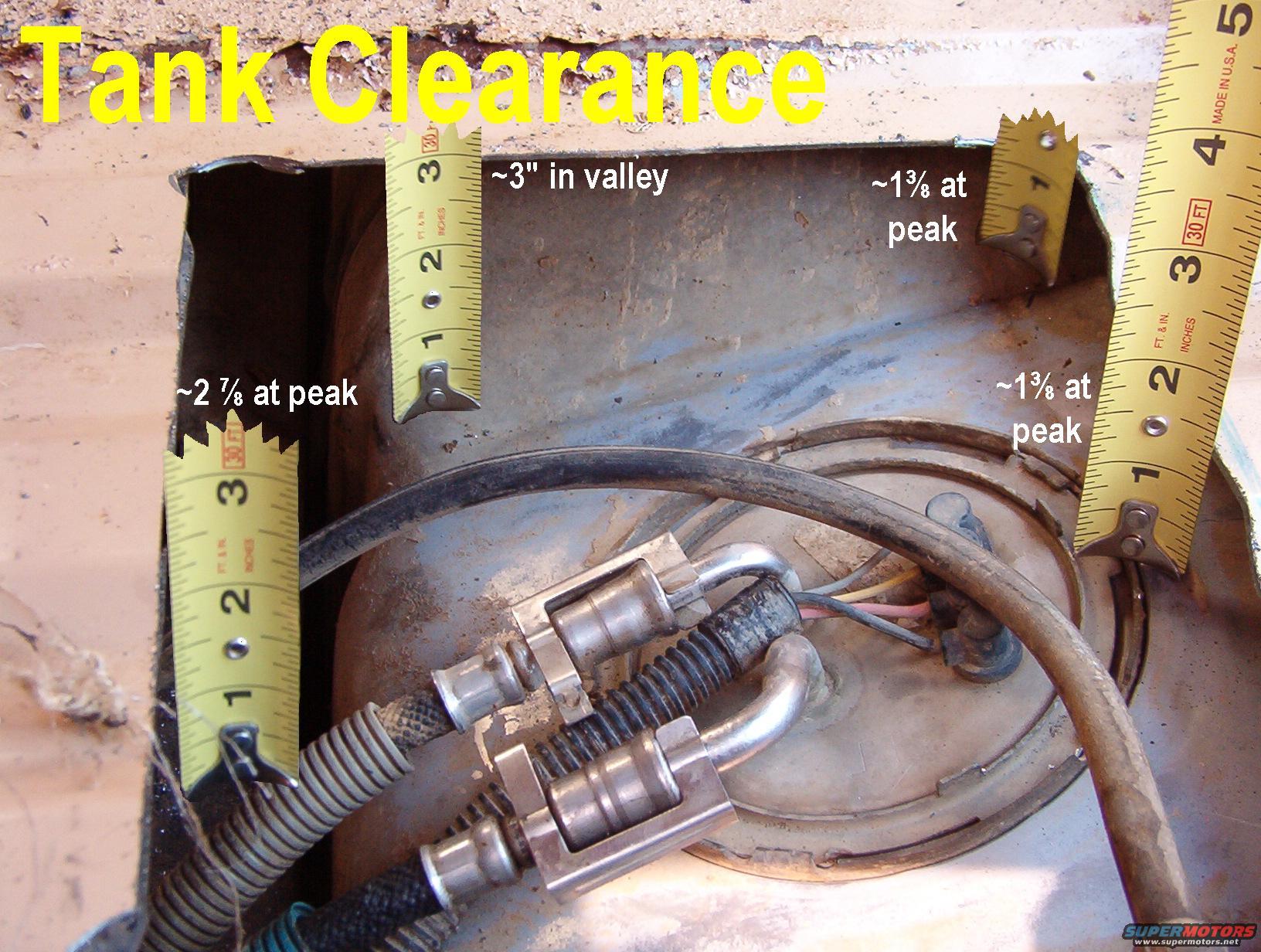Tank Clearances for standard body mounts in good condition (these are Energy polyurethane). Collapsed mounts will provide less clearance; a body lift will provide more.