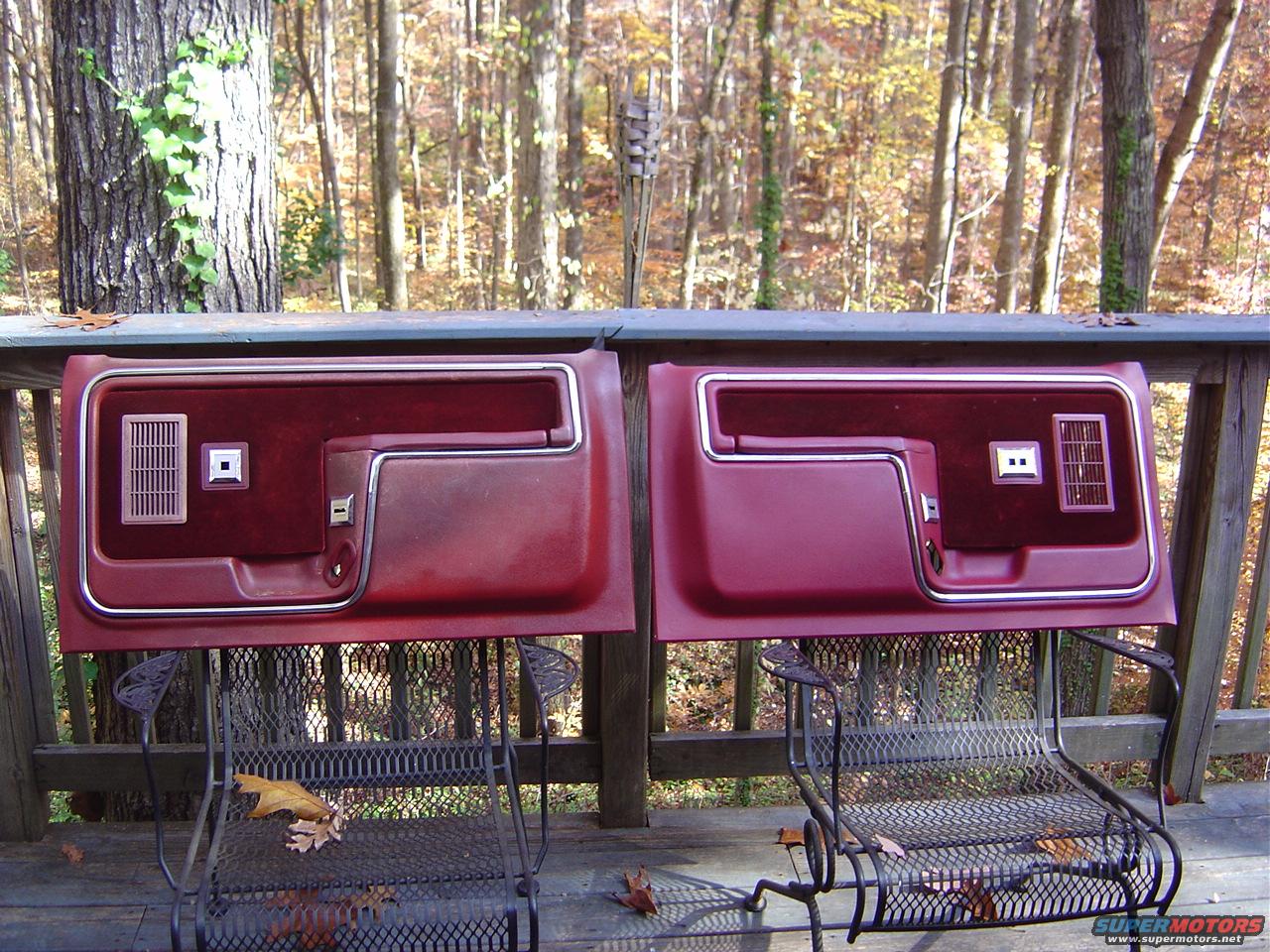 The restored drivers side door panel next to the non restored passenger side panel.