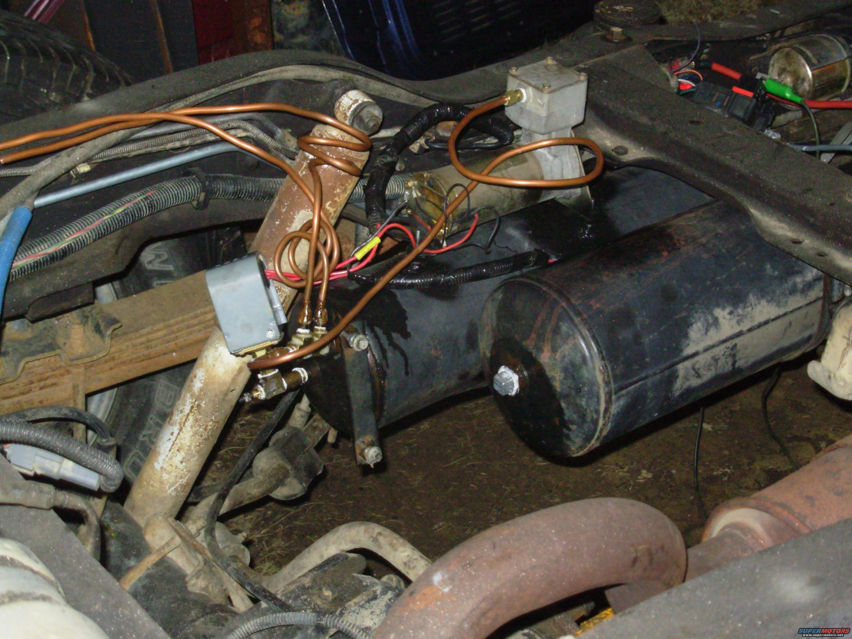 It finally occurred to me that the pressure switch wouldn't work if it was attached to one compressor, so I moved it. I also figured out how to make the check valves actually work right, so the system is ready for any extra compressors I feel like installing. This one takes about 10min to go from 0 to 144psi.