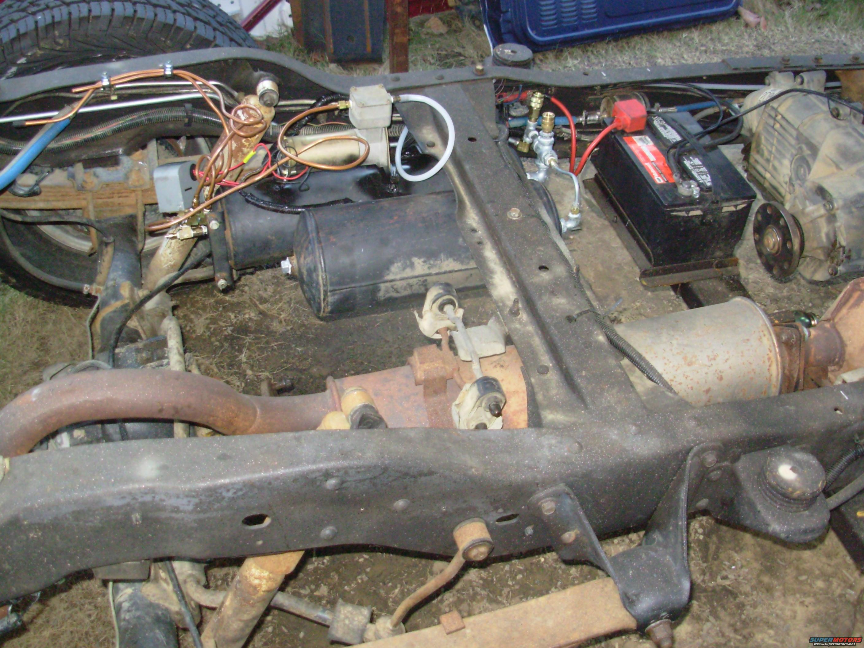 One of the brass quick-connectors is for the front bumper line (which I've decided to make from a common rubber air hose instead of steel), and the other will be for the dash gauge.