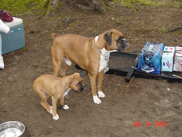 The doggies in camp in the morning...the mosquitos were fierce