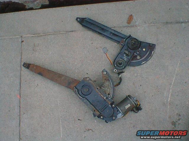Here is the stock regulator next to the 86 F150 regulator. Originally, I was going to shorten the newer regulator to match the stock one but then I realized that the later door is about the same size as is the later window so I decided to try and use it as is. The really important part of doing this is being sure the new regulator is in the down position and then installing it with the window in the right spot for the fully lowered position and then figuring out where to drill the holes so that the regulator is in the right spot.