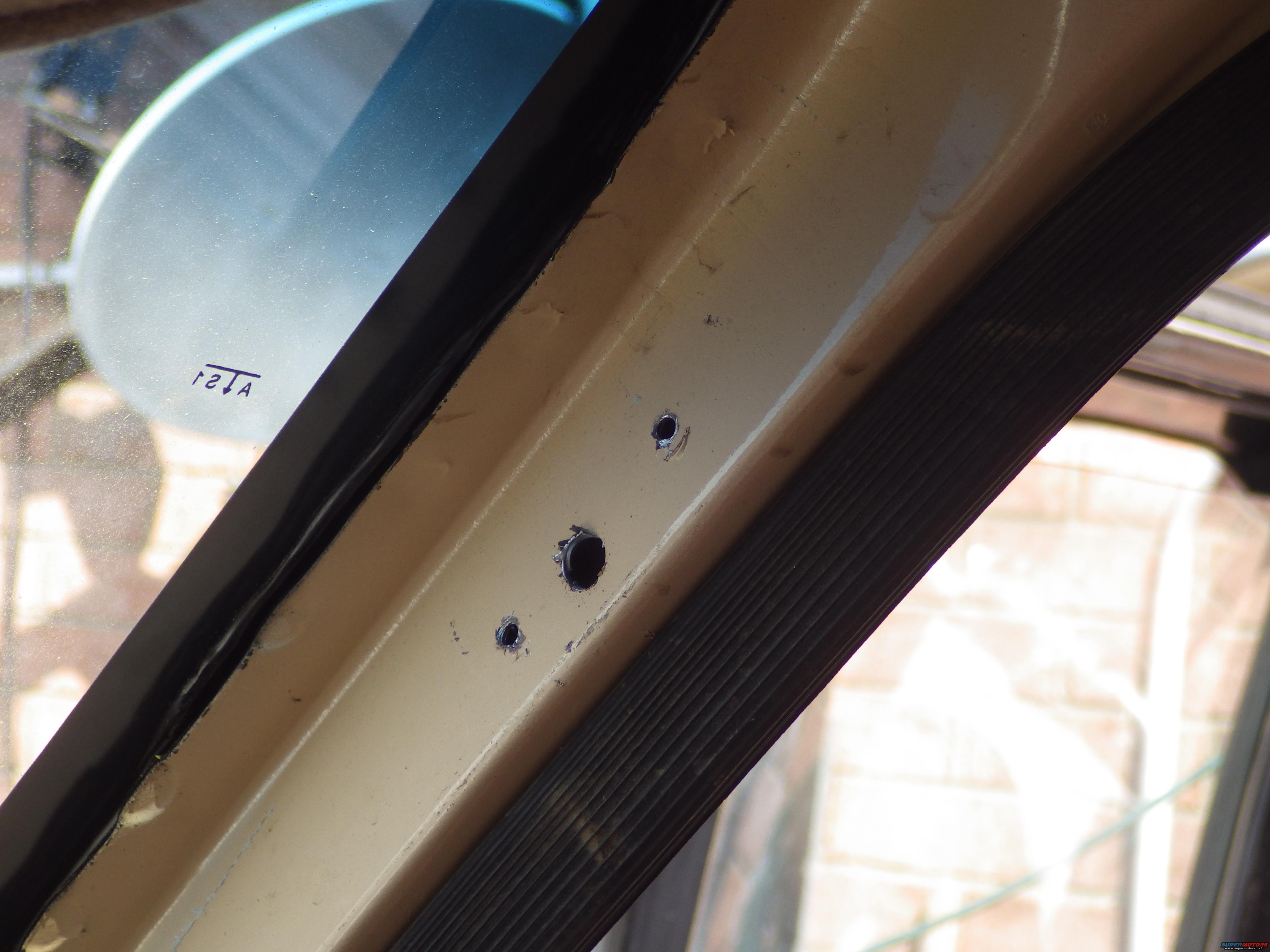 I temporarily mounted the bracket, ran the bolt in against the A-pillar to mark it, removed the bracket, and drilled the oversized pilot hole for the long bolt to pass through.