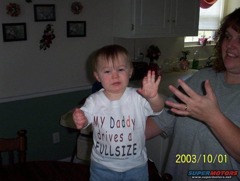 My youngest fan modeling her shirt that Daddy got her