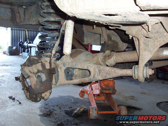 The old shock mount on top is in the bucket, and doesn't quite line up with the new lower mount on the radius arms. I need to fix this at some point.