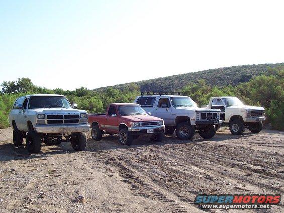 The lineup: Dan's Ramcharger on D60 with electrac, high steer, D70 LS.