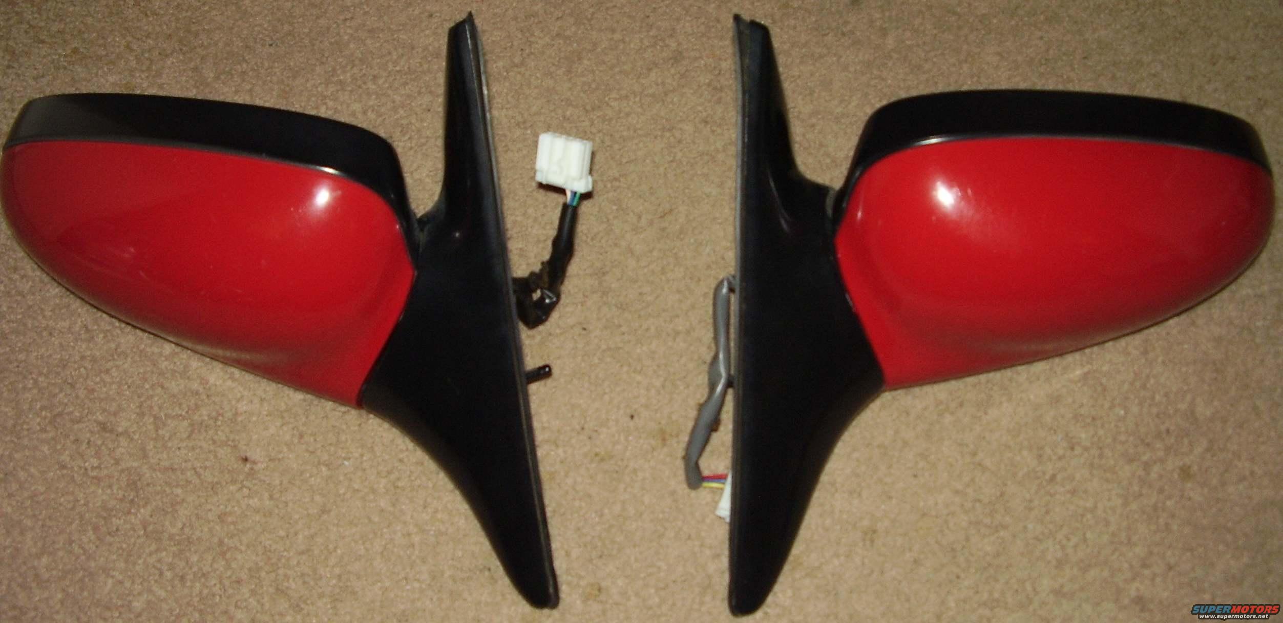 96+ PGT power mirrors, 2-tone rio red with black trim, top view