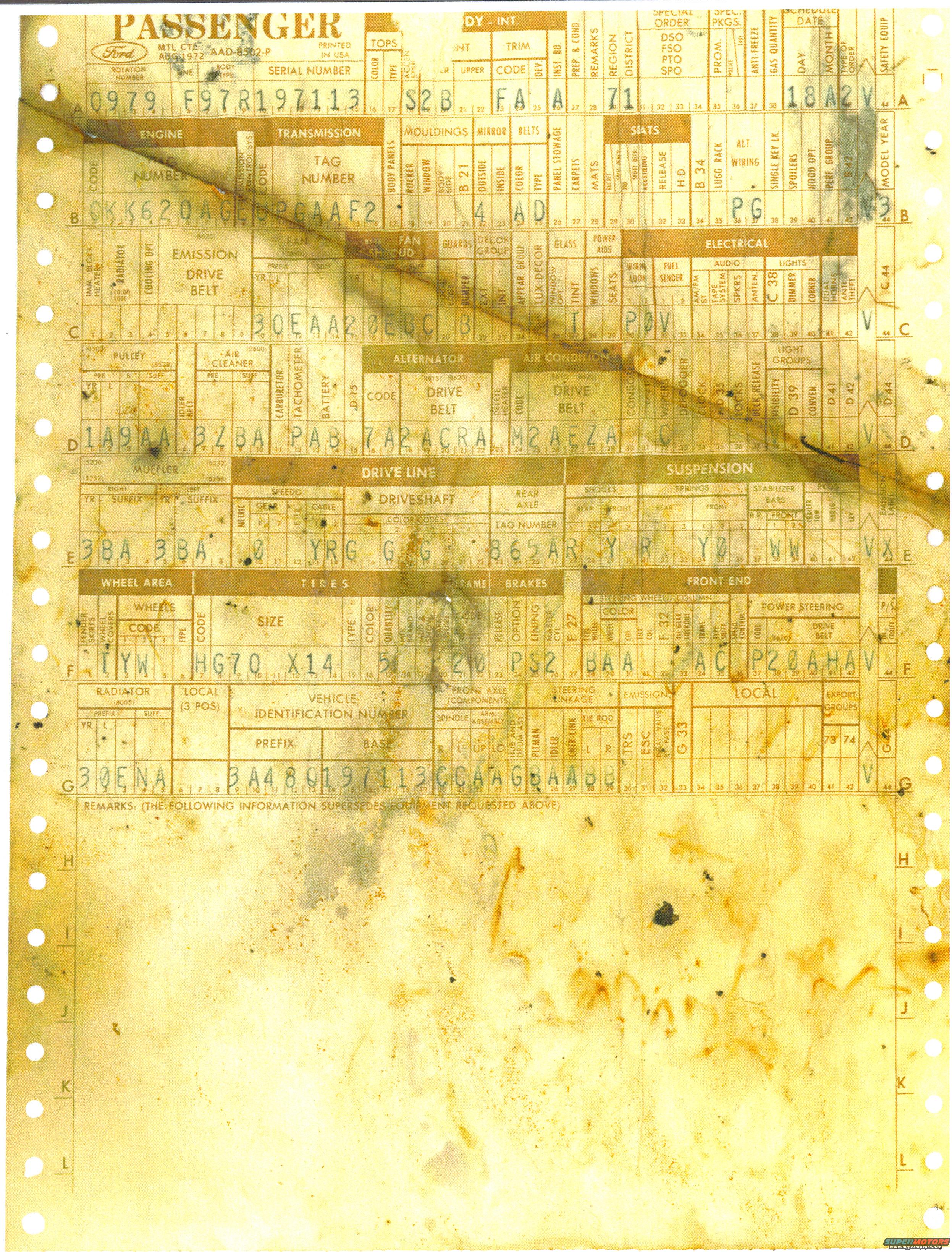 I found the original "build sheet" when I replaced the carpet; this is the "recipe" the guys in the factory followed when they built the car on the assembly line.
