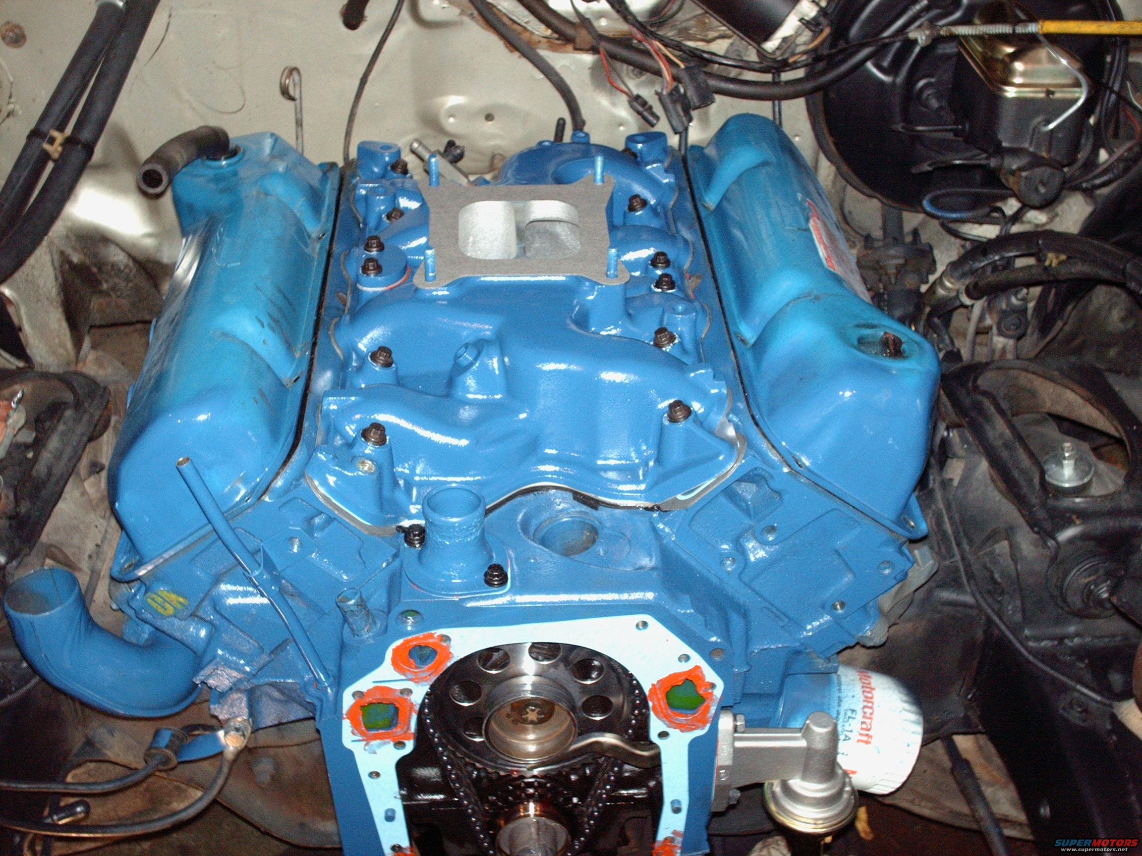 I painted this Edelbrock Performer 4 barrel intake Ford Corporate Blue before I installed it