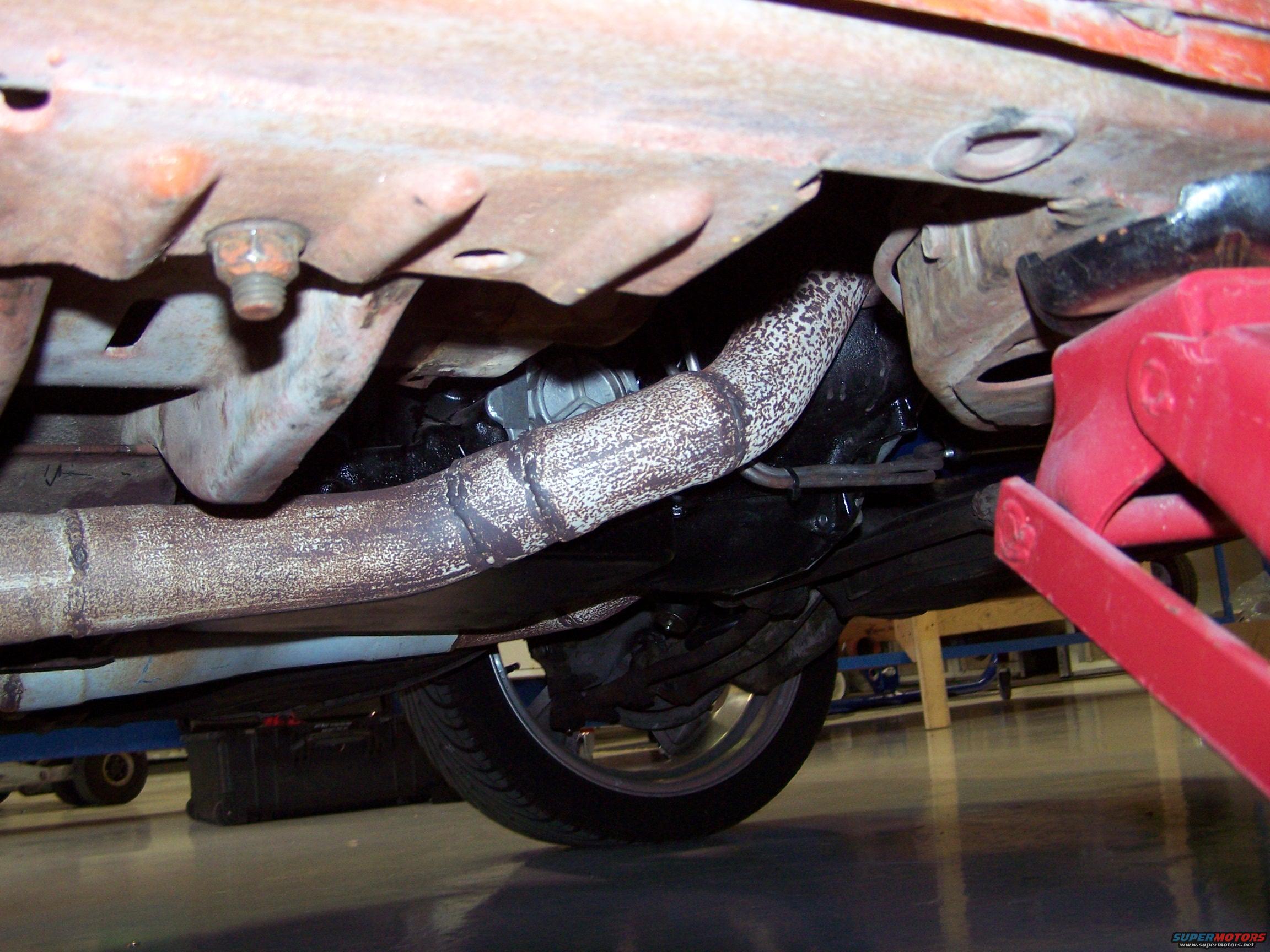 I re-used the stock steel transmission pan because I was worried about ground clearance, but there is lots of room; I installed a B&M drain plug; it holds 10 liters of type F fluid.