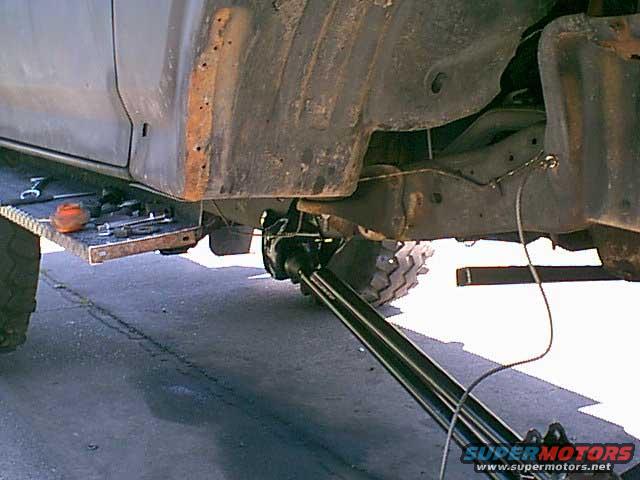 Here is the rear of the new extended arms. I used some stock no lift radius arm mounts. you can see the square tube the last owner used to steady the 4" drop mounts. I found the front shaft hit this bar many times. I am glade it is gone.