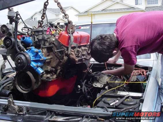 after a few hundred miles, notice how i now have the correct A/C pump and 5.8 bracket for that setup (the other setup was only being held on my the 2 bolt holes that still lined up)