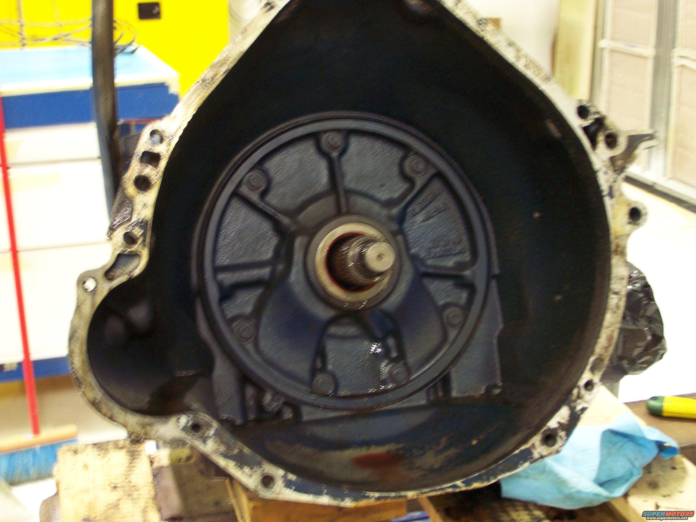 C6 bell housing with torq converter removed; teardown just getting started.