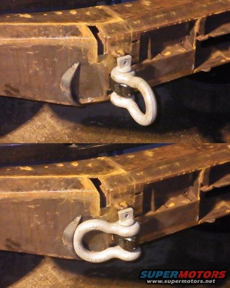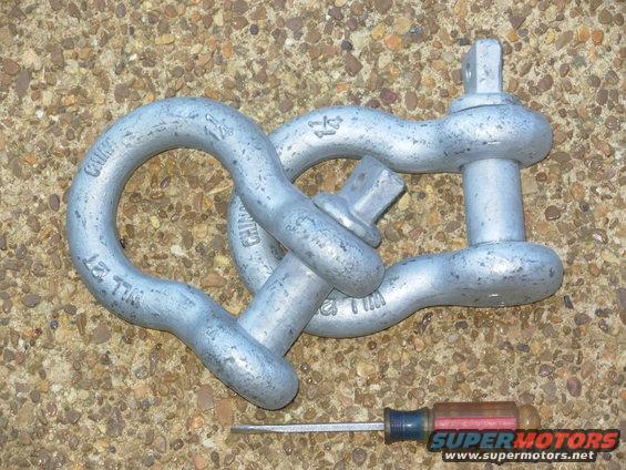 I found these 1 1/4" (cross-section) shackles (galvanized cast iron) on sale at the Hot Springs AR off-road park, and they turned out to be perfect for my new bumper.