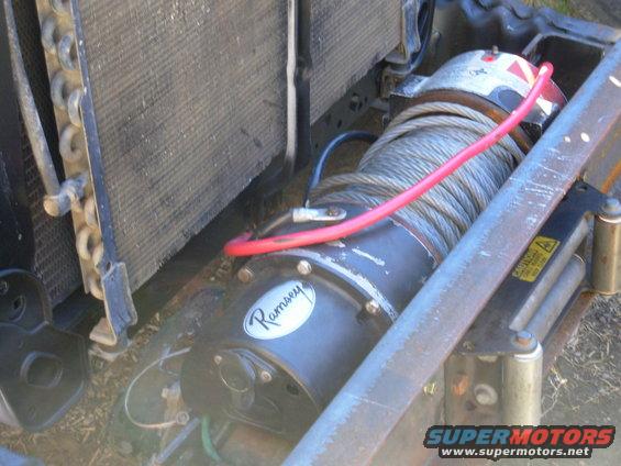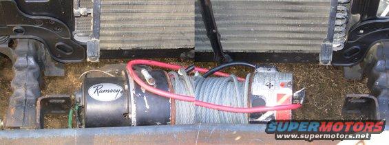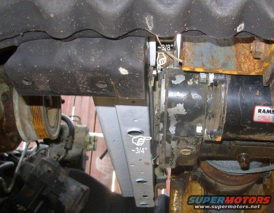 With the winch drum centered between the frame rails, there's barely a half inch between the motor & the R frame tab (where the green wires are). IF THE IMAGE IS TOO SMALL, click it.