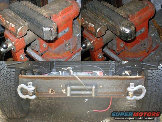The bull nose gives these drawbars a finished look, and probably strengthens them slightly. I had planned to make them from solid 2" square bar, but that turned out to be ridiculously expensive, in addition to being unnecessarily heavy. IF THE IMAGE IS TOO SMALL, click it.