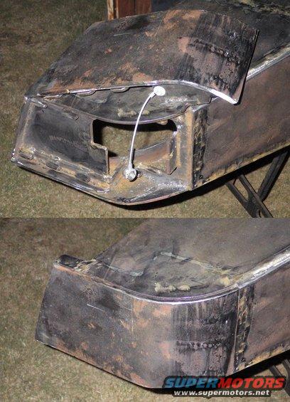 After laying out the angle of the front panels onto the curve, I cut the bumper corners out.