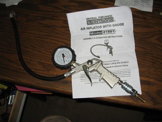little harbor freight inflator w/gauge I picked up cheap. has a little quick lock at the end so should be very handy in airing up tires quickly.