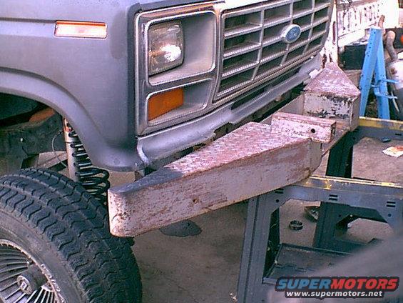 with the back worked out i needed to get a front mount. these were cut off the rear bumper andgoing in the scrap pile and worked perfect. Here is the driver side. there are 3 bolts going into the bumper. and 2 going to the stock bumper holes in the frame.