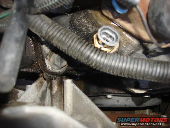 here is the old temp sensor. it is next to the thermastate housing. this is not for the temp gauge it is for the computer.