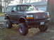 HERES AFTER I PUT SOME 2INCH DAYSTAR COIL SPACERS IN THE FRONT AND 3 INCH BLOCKS IN THE BACK, NOW ITS GETTING CLOSE TO A GOOD SIZE BUT STILL GOT THOSE UGLY STEEL WHEELS BUT I'M NOT THROUGH YET