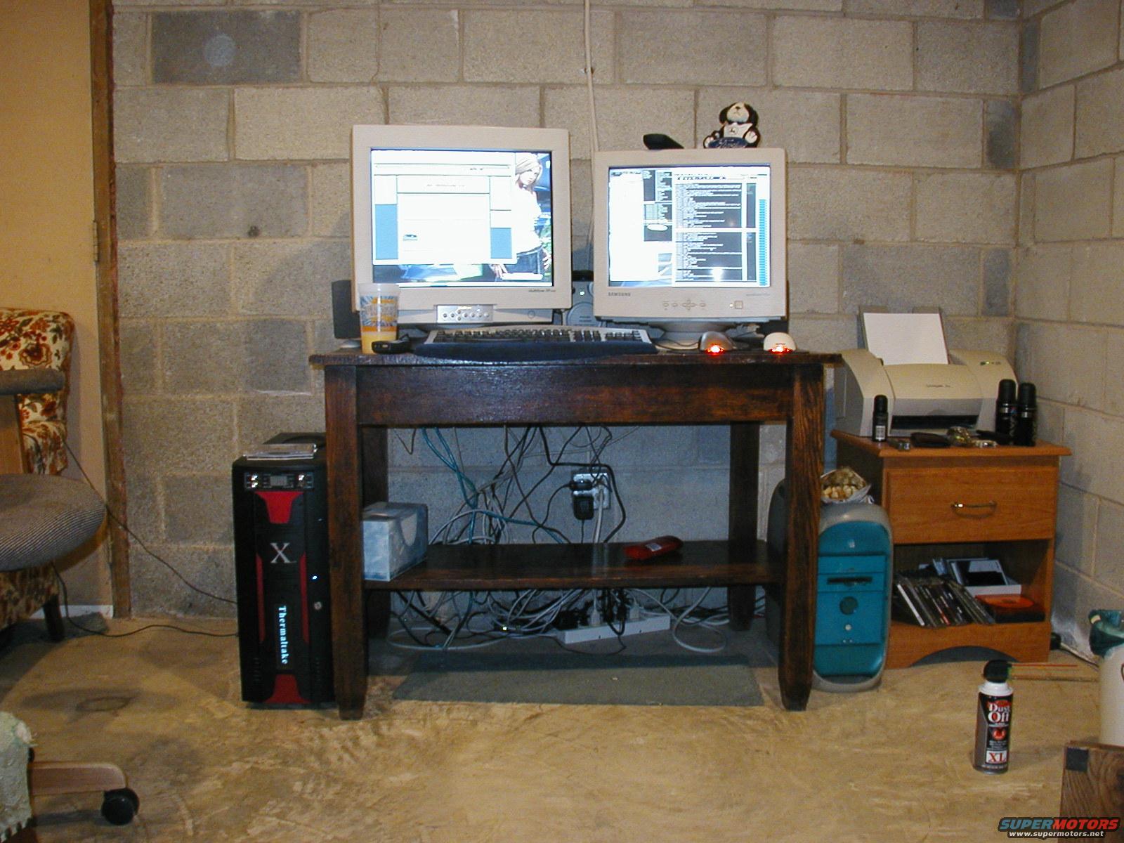 My computers. Gaming rig on the left, Mac G3 photoshop rig on the right. 21 inch flat screen monitor on the left, 19 inch flat screen on the right. Is it sexy? I think so.