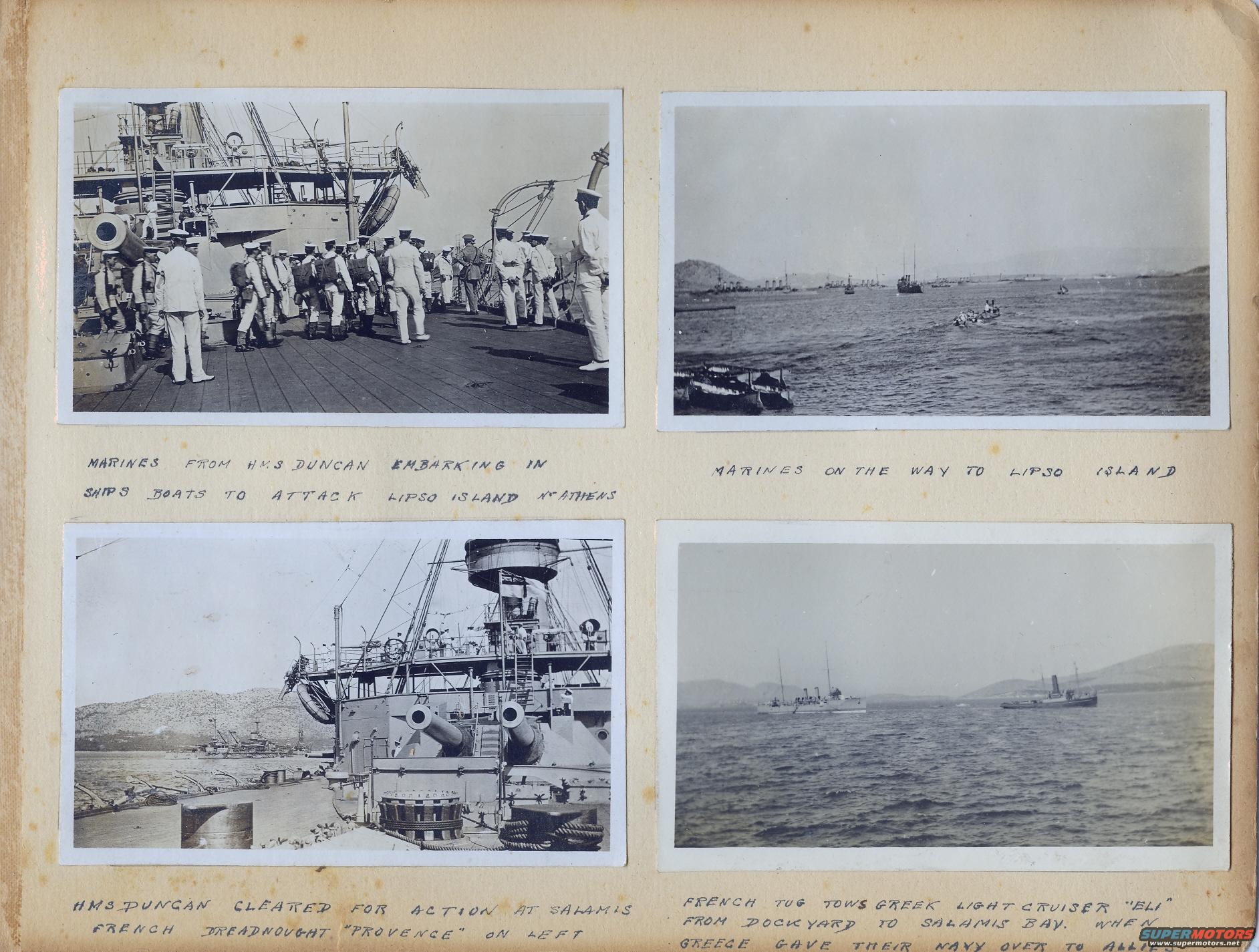 These are pages from a British officer's personal photo album from his time in the Mediterranean Sea during World War 1. Most of them appear to have been taken in early 1915 during the height of the Dardanelles Campaign, including some on the Anzac beach near Gallipoli.