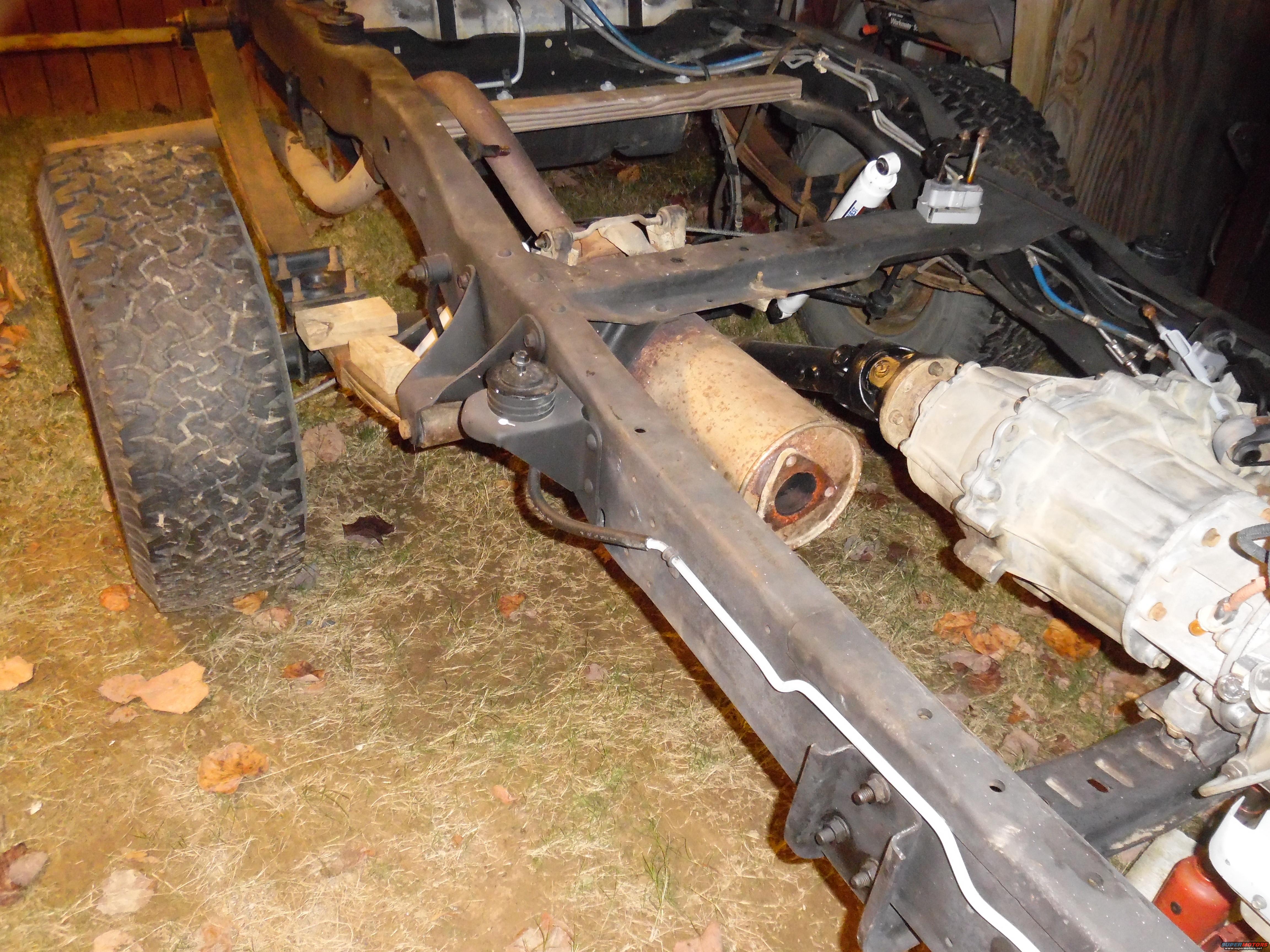 To set the flange on this truck's new Y-pipe, I borrowed the original '96 Bronco muffler from my '83.