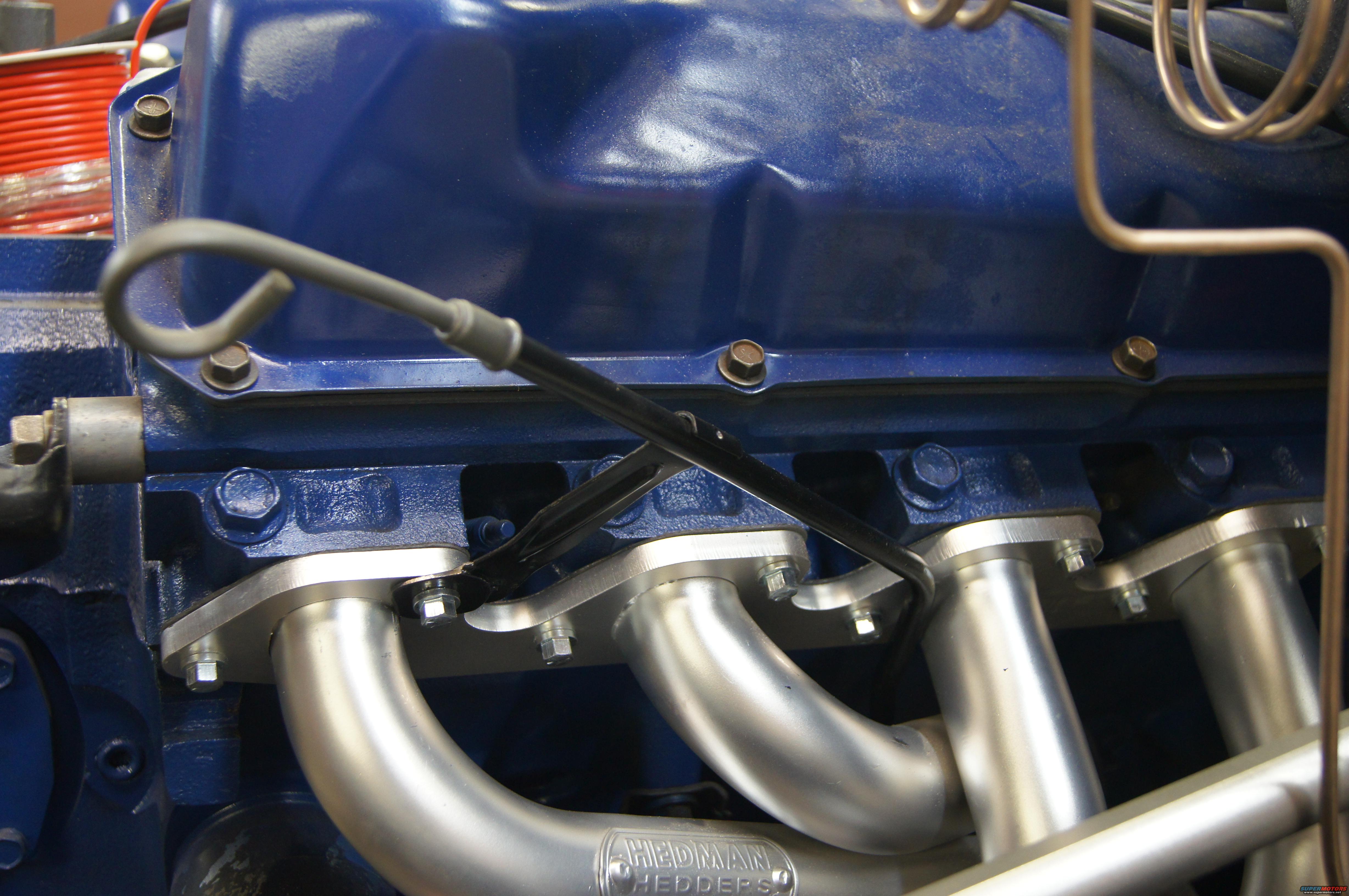 Custom bent dipstick tube to fit with headers. what a job.