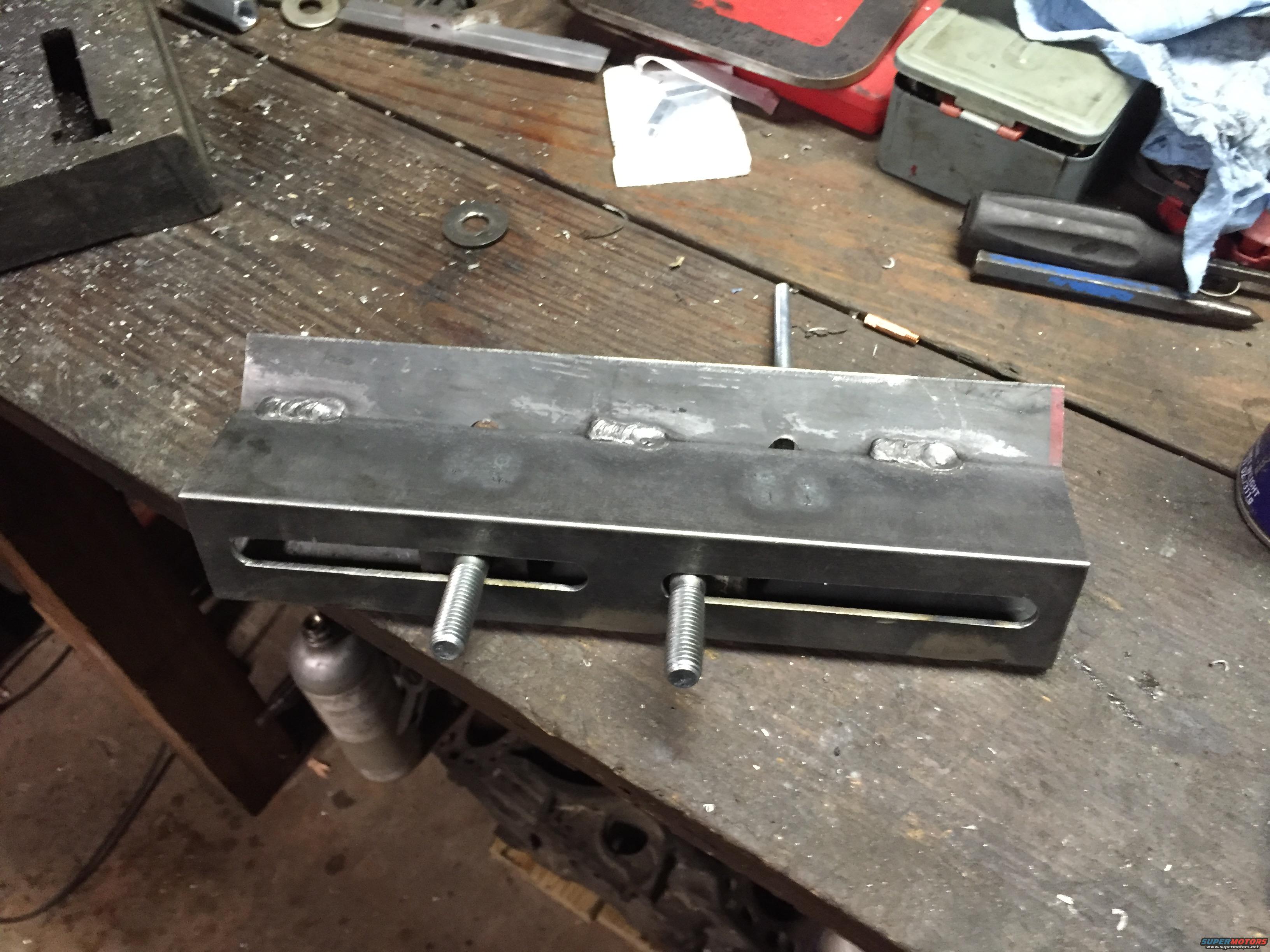 Made a bracket to hold the intake flat for boring the injector holes. Simple 45 degree plate bolts to the intake flange and bolts to the drill press.