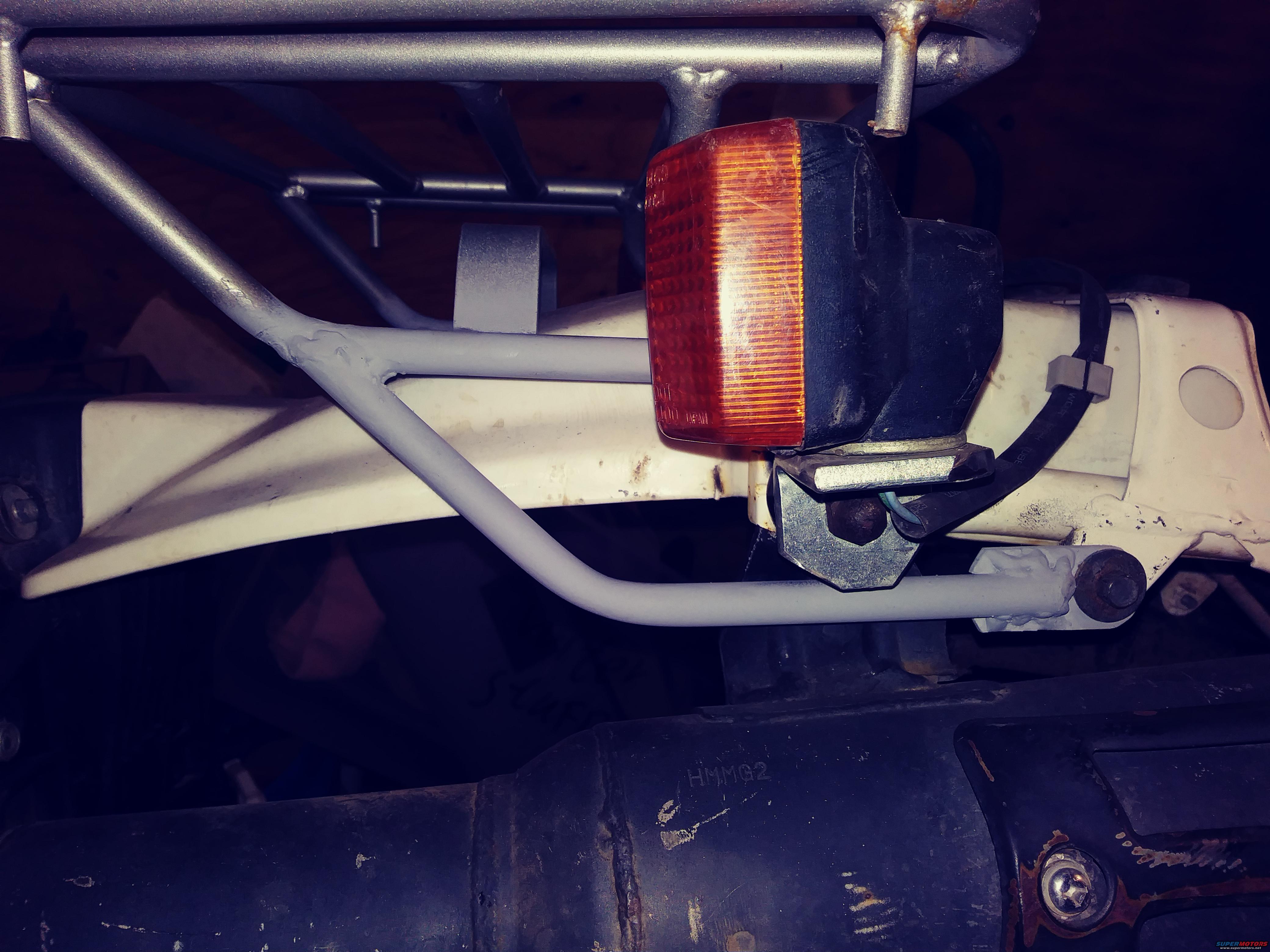 Modified XR650L rear luggage rack on the XL600R. Pretty solid and now protects the turn lamps much better.