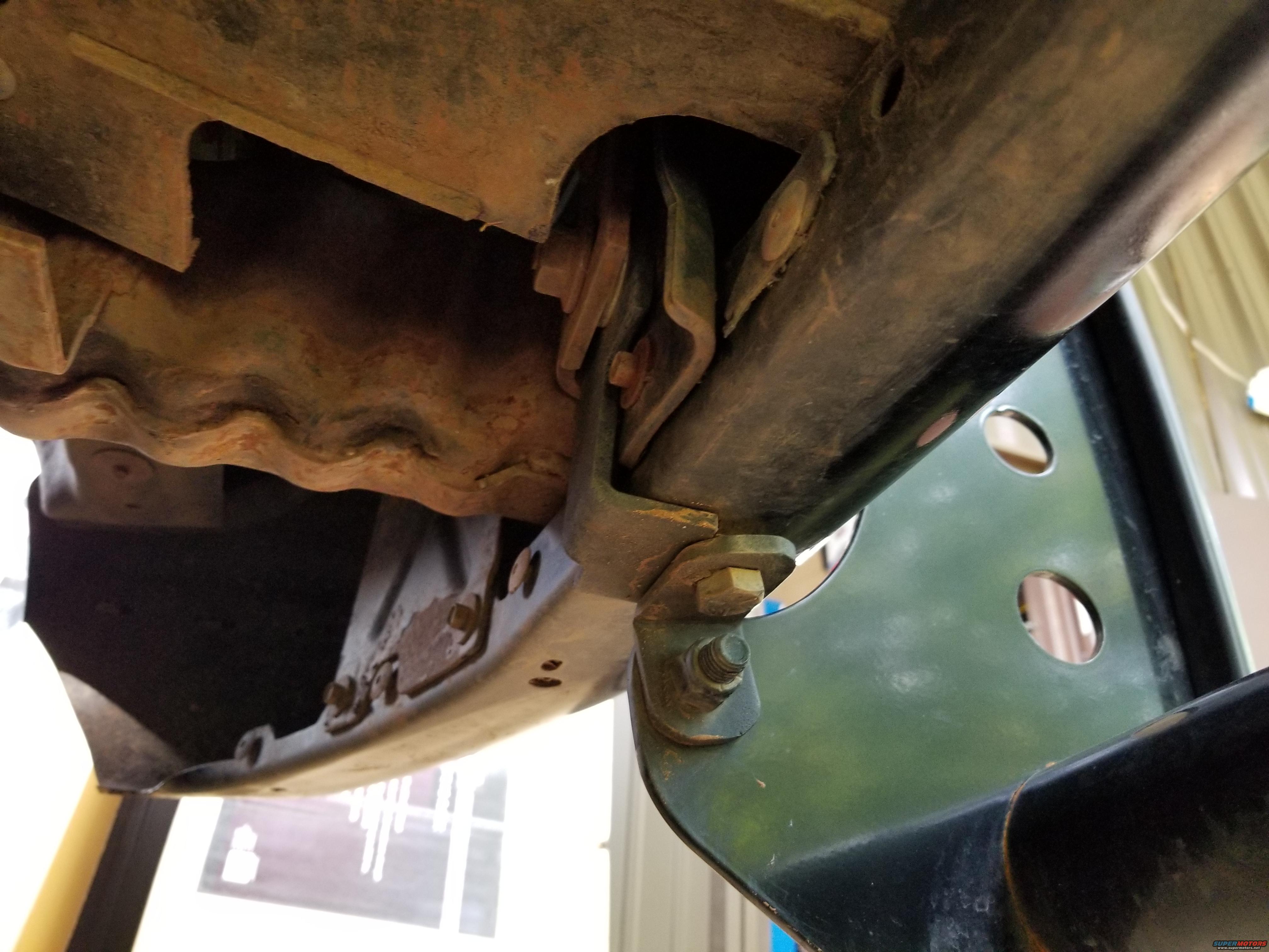 attachments to the bumper are unfortunate. Several bolts are drilled through the (rare) factory black bumper, so it's not really attached to the frame. And it's not even