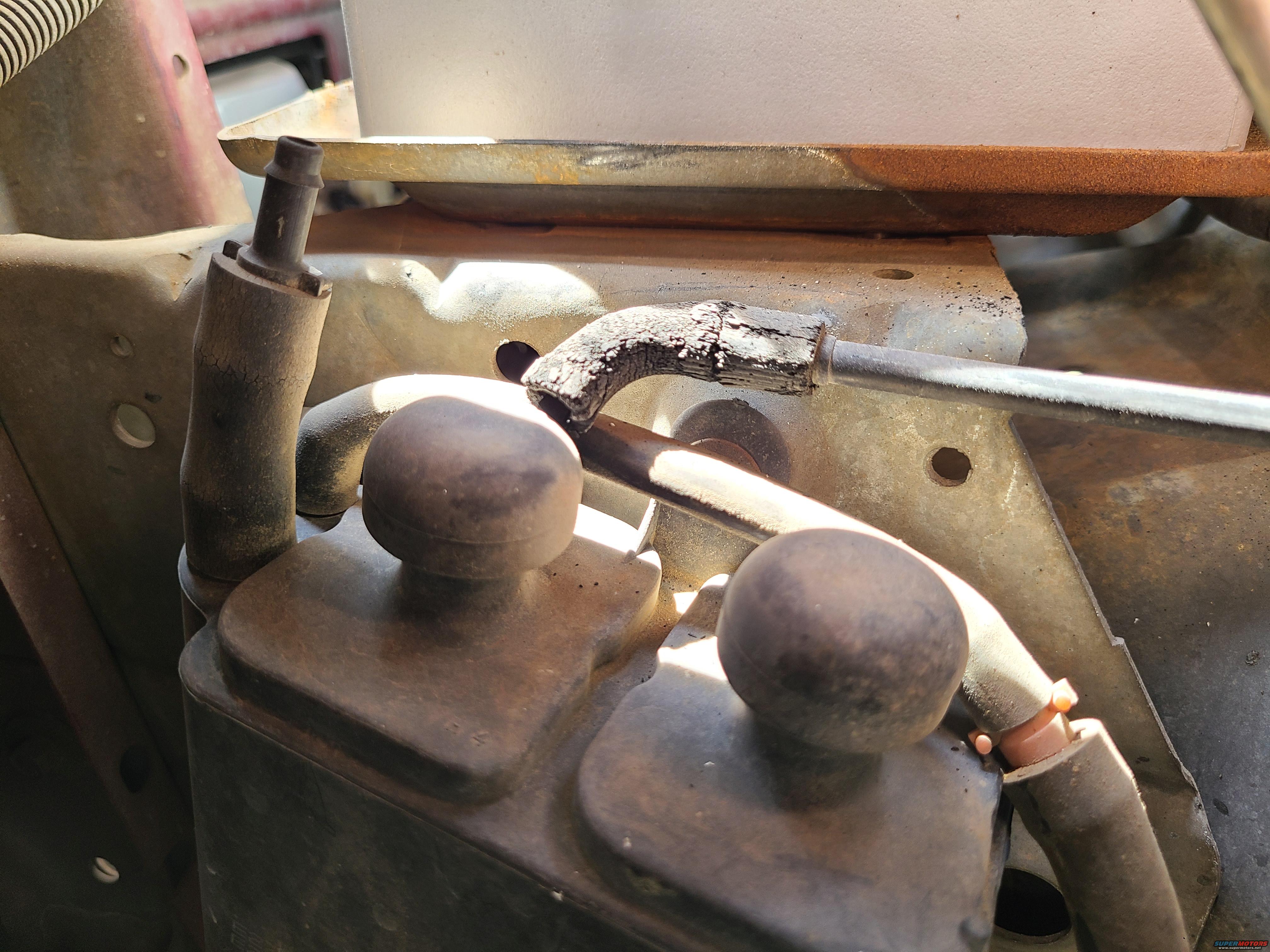 The vapor hose from the canister to the CANP solenoid is degrading (as usual) and has split enough to fall off the canister nipple.