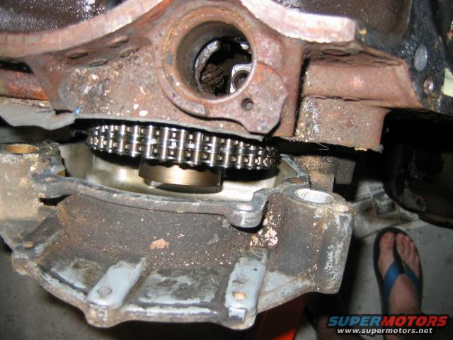 The timing chain cover came off, but the harmonic balancer needs to be pulled before that will come off.