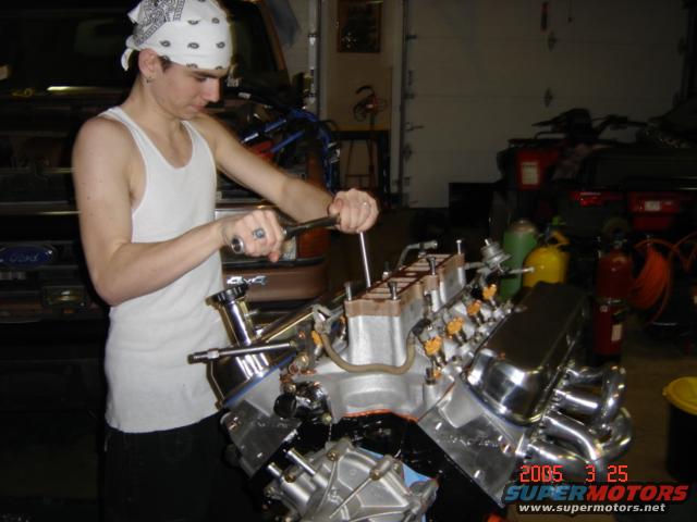 My son torquing the intake manifold.