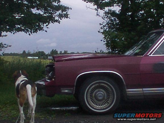 Side view of the damage and my dog in the background
