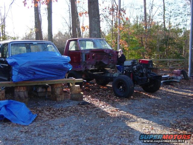 New cab going on for the first time. This is to mock up the new crossmember ... it will have to come back off to be painted later.