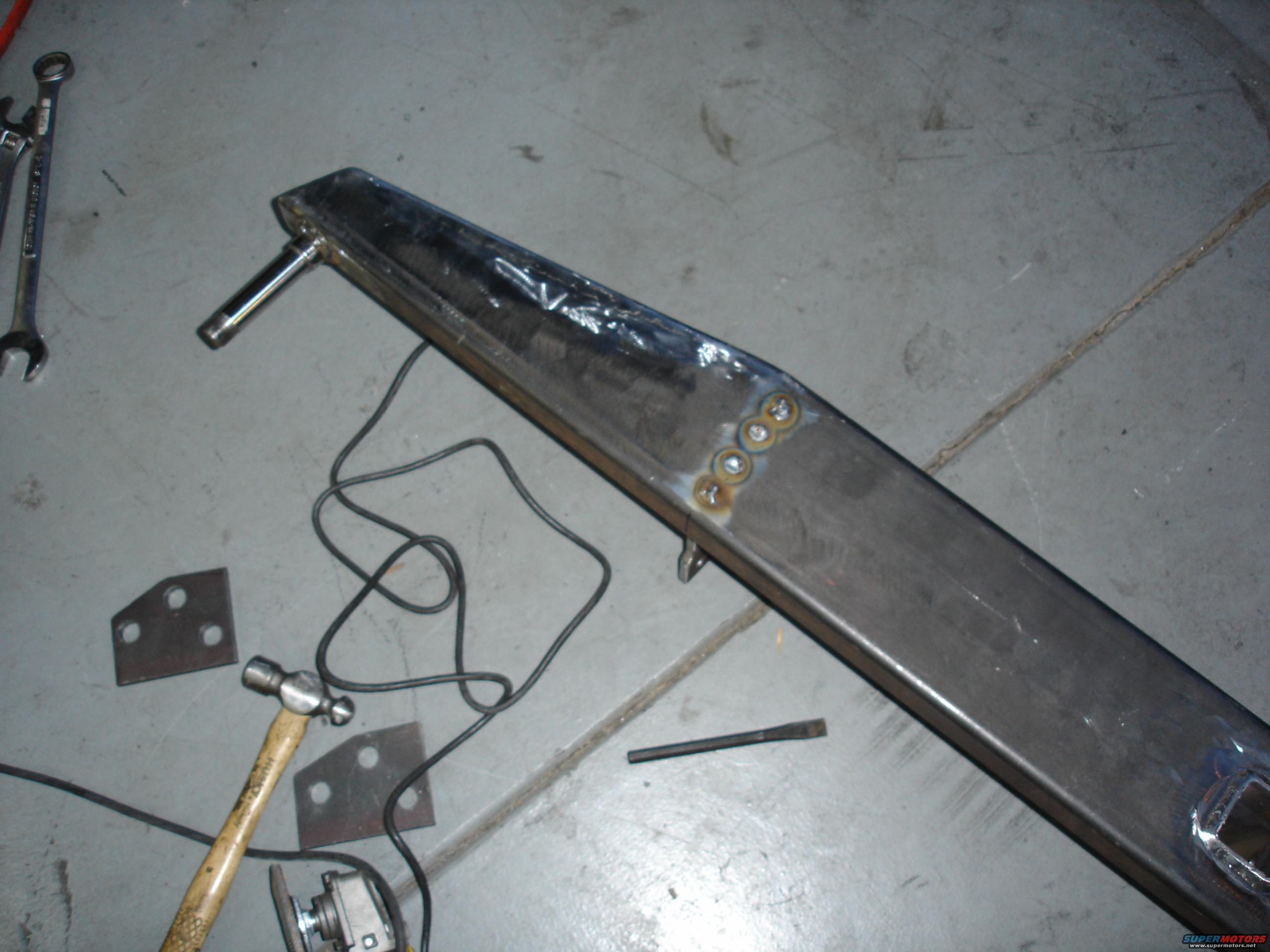 This picture shows the plug welds through the front of the bumper for the brackets