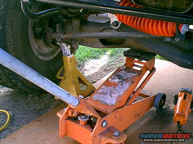 I did the bushings on the bronco. i put the jack stand on the outer axle and used the floor jack as a pivot point.
