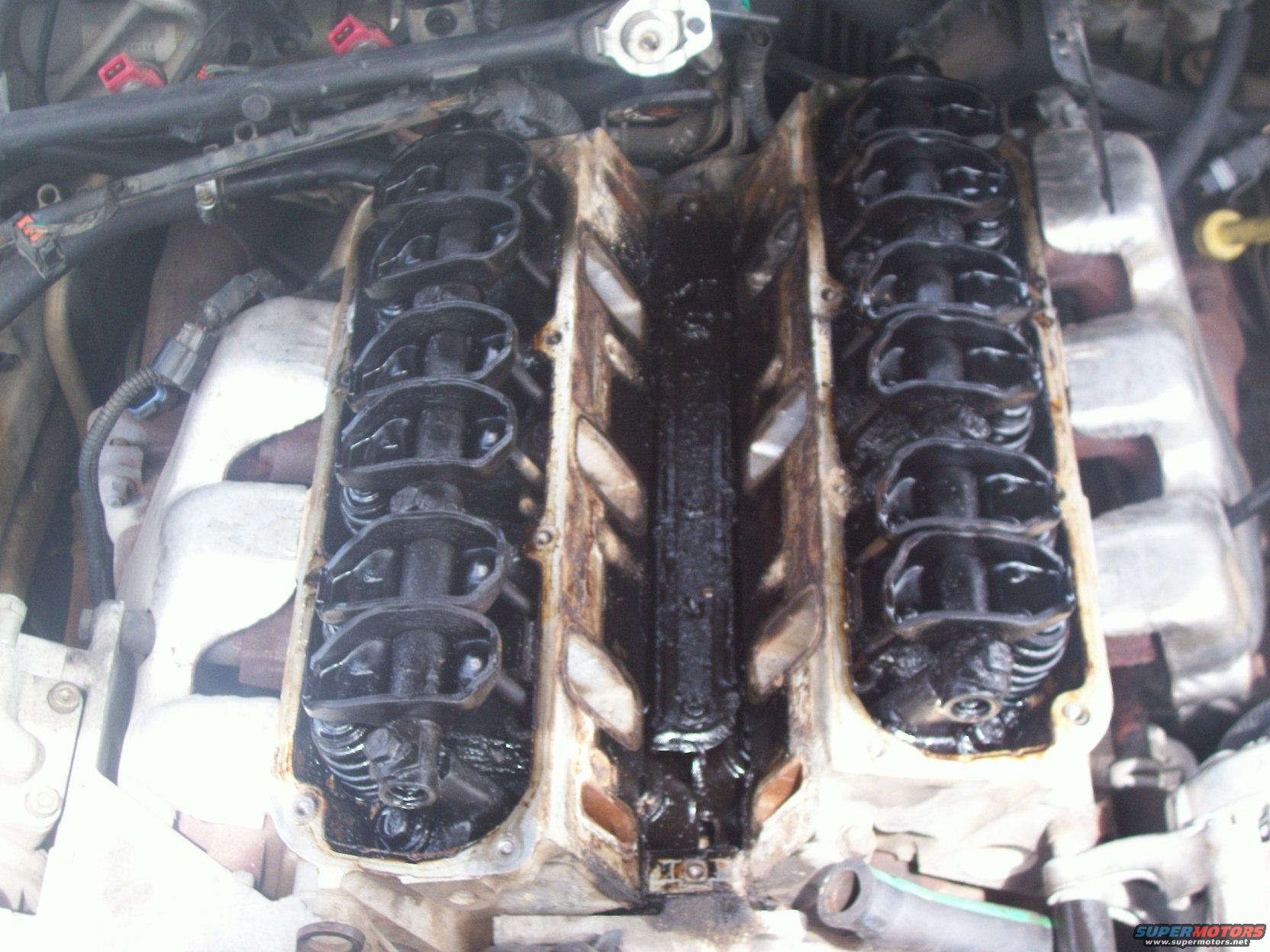 And here is the engine with the valley pan removed. You can see some of the lifters and cam here.